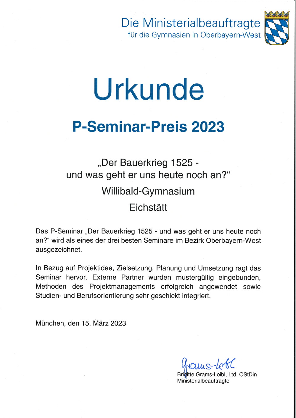 Verleihung des P-Seminar-Preises in München: Die Bauernkriege