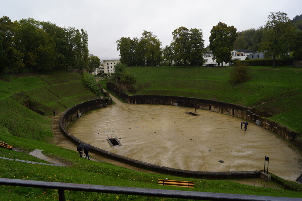 Trotz starken Regens besichtigten wir das Amphitheater, einen Teil des „UNESCO-Welterbes römischer Baudenkmäler“. Dort konnten wir die sowohl die Arena mitsamt dem unterirdischen Bereich als auch die Zuschauertribüne besichtigen.