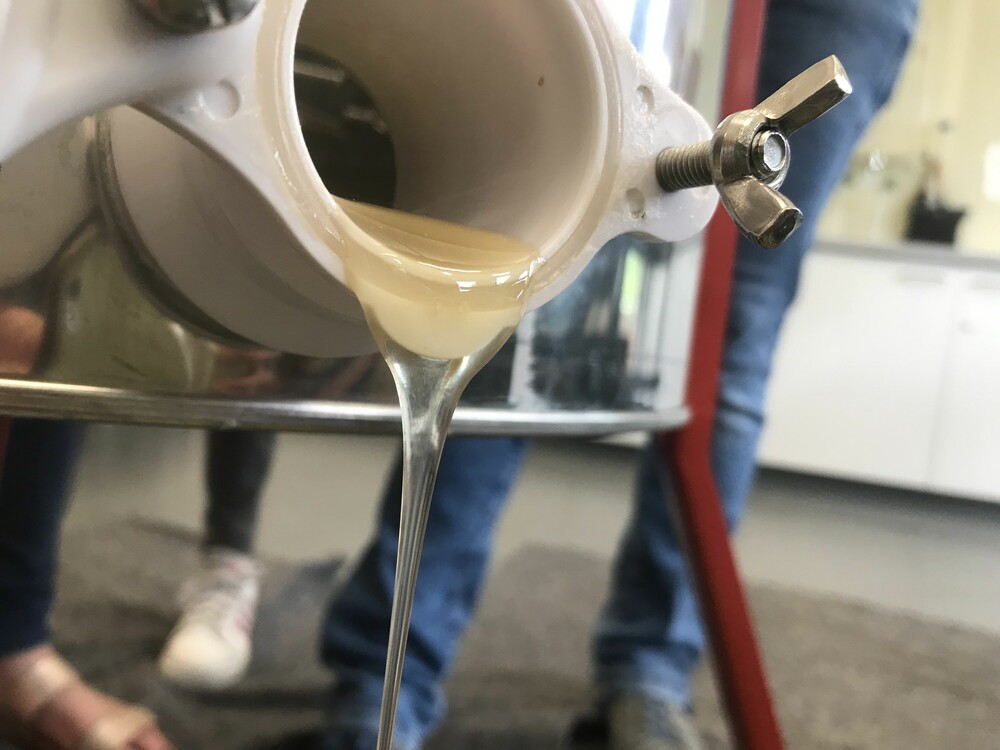 Höhepunkt des Imkerjahres war das Schleudern der mit Honig gefüllten Waben. 10Kg Honig konnten geerntet werden und wurden mit individuell gestalteten Etiketten am Gartenfest verkauft.