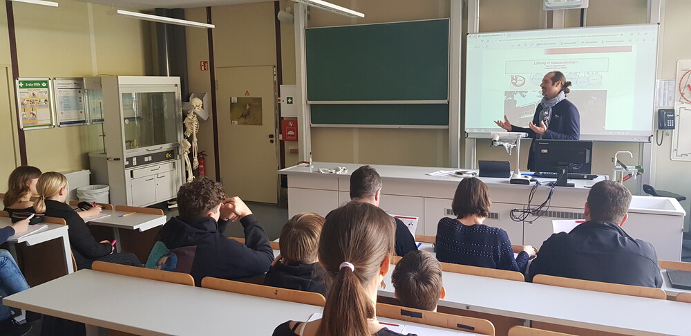 Die Umwelt-AG hat sich für das Schuljahr verschiedene Ziele gesetzt. Eines davon ist, sich mit dem Thema Klimawandel näher zu befassen. Und hier beginnen wir direkt vor Ort: Wie lüften wir effizient? Wie heizen wir energetisch sinnvoll? Wie können wir Energie einsparen? Rund um diese Themen begrüßte die Umwelt-AG am Mittwoch, den 5. Februar, Hrn. Diol-Ing. Josef Frey, der einen Vortrag zur richtigen Lüftung in Klassenzimmern hielt. Die wichtigste Erkenntnis kam dabei gleich zu Beginn zur Sprache: Eine hohe CO2-Konzentration in der Raumluft verursacht Ermüdung! Somit ist der CO2-Gehalt in der Luft ein Indikator, den wir berücksichtigen müssen, wenn wir die Raumluftqualität verbessern wollen. Die Empfehlungen für eine gute Raumluft bezogen auf den CO2-Gehalt liegen laut einer Studie zu Raumluftqualität in Klassenzimmern bei einem Wert um 1200 ppm (parts per million). Und das können wir vor Ort einfach kontrollieren, indem die Schüler einen Blick auf die Luftqualitätserfassungssensoren werden, die in jedem Klassenzimmer angebracht sind. Grünes Licht bedeutet - gute Raumluft! Rot bedeutet: Maßnahmen ergreifen, da der Wert über 2000 ppm liegt. Dann heißt es Stoßlüften!