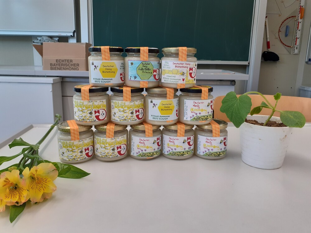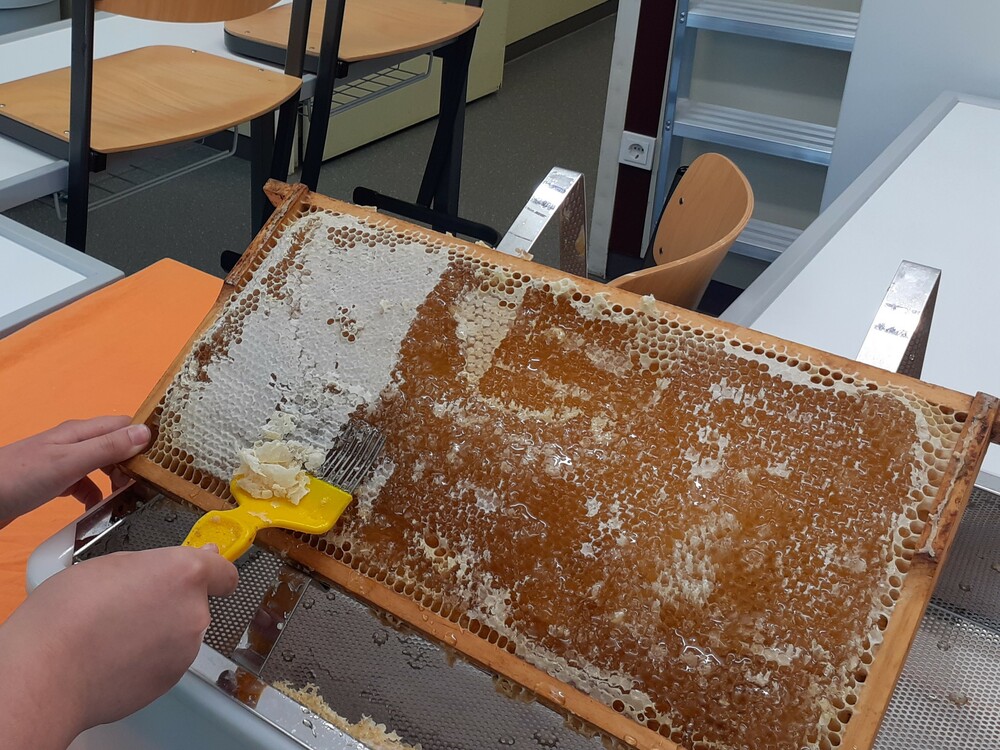 In diesem Schuljahr widmeten sich die Schüler*innen dem Aufbau und der Betreuung der Schulimkerei. Nach einer theoretischen Einweisung über das Leben der Bienen und die Tätigkeiten eines Imkers folgte der praktische Teil, bei dem die Jungimker das wöchentliche Arbeiten am Bienenstand kennenlernen und selbständig durchführen durften.