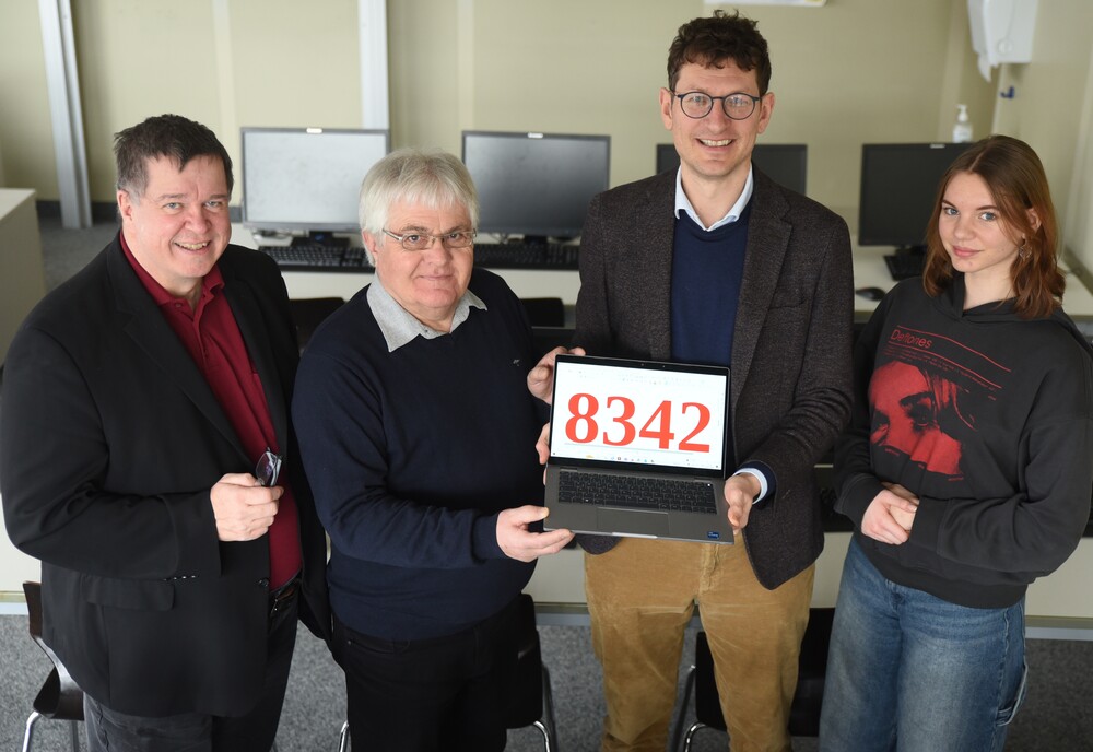 Das Willibald-Gymnasium hat bei seiner Weihnachtsaktion genau 8342 Euro für die Brasilienhilfe von Manfred Göbel gespendet. Damit soll nun ein Computerraum für Jugendliche gebaut werden. Über die großzügige Spendensumme freuten sich (von links): Schulleiter Claus Schredl, Franz-Josef Beringer als Vorsitzender der Brasilienhilfe, Religionslehrer Andreas Graf und Schülersprecherin Caroline Meyer.