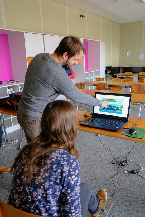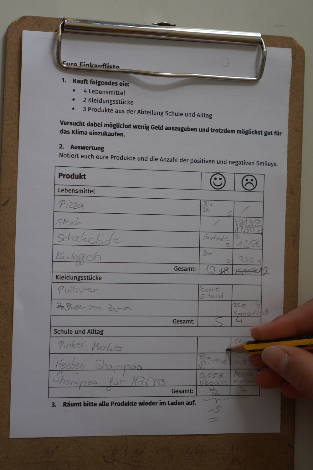 Beim anschließenden Rundgang durch die Auswertungsabteilung überprüften die Schüler*innen selbstständig ihren Einkauf auf Klimafreundlichkeit. Schüler*innen erfuhren unmittelbar durch ihren „Einkauf“, wie es um die Klimabilanz der Produkte bestellt ist, die sie auswählt haben.