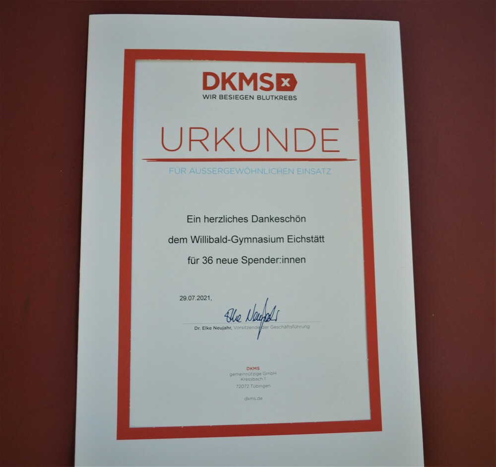 Auch am Willibald-Gymnasium wurde in diesem Schuljahr zusammen mit der DKMS für die Oberstufenschüler*innen eine Typisierungs-Aktion organisiert.