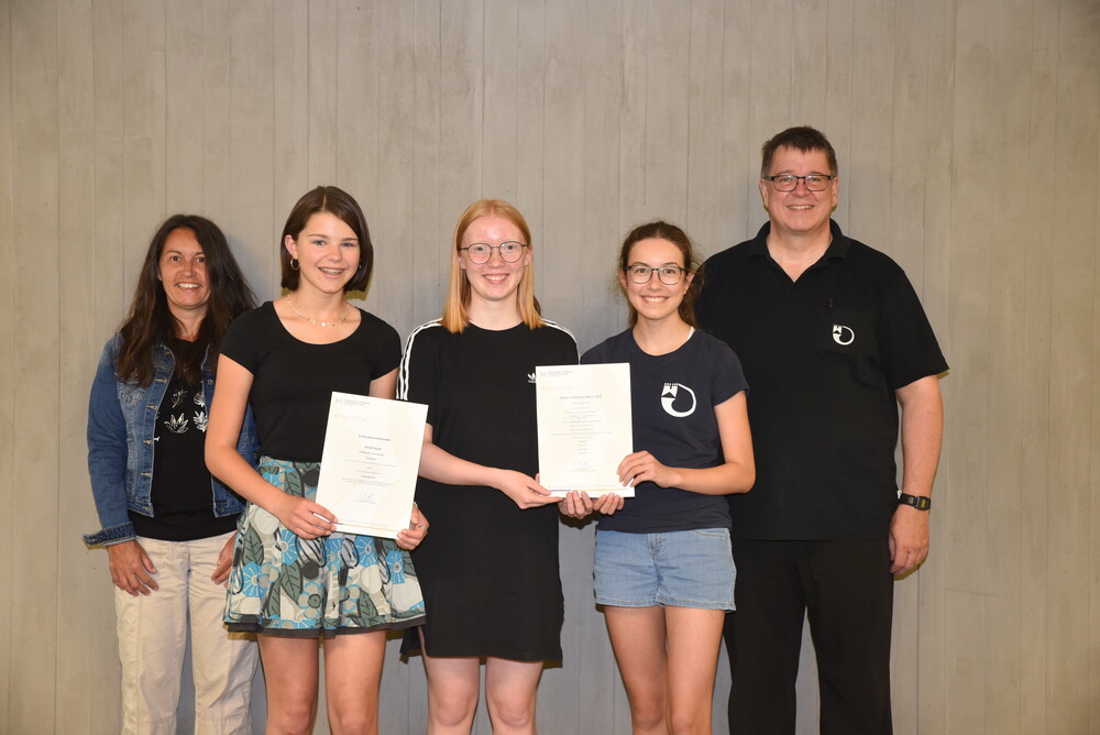 Eichstätt (gfs) Vier Schülerinnen des Willibald-Gymnasiums haben beim Bundeswettbewerb Fremdsprachen sehr gute Ergebnisse einfahren können. Nach den Pfingstferien nahmen die erfolgreichen Teilnehmerinnen ihre Urkunden im Rahmen einer kleinen Preisverleihung an der Schule entgegen. Der Schulleiter Claus Schredl und die betreuende Lehrkraft Katrin Obermeier gratulierten den Schülerinnen zu ihrer tollen Leistung.