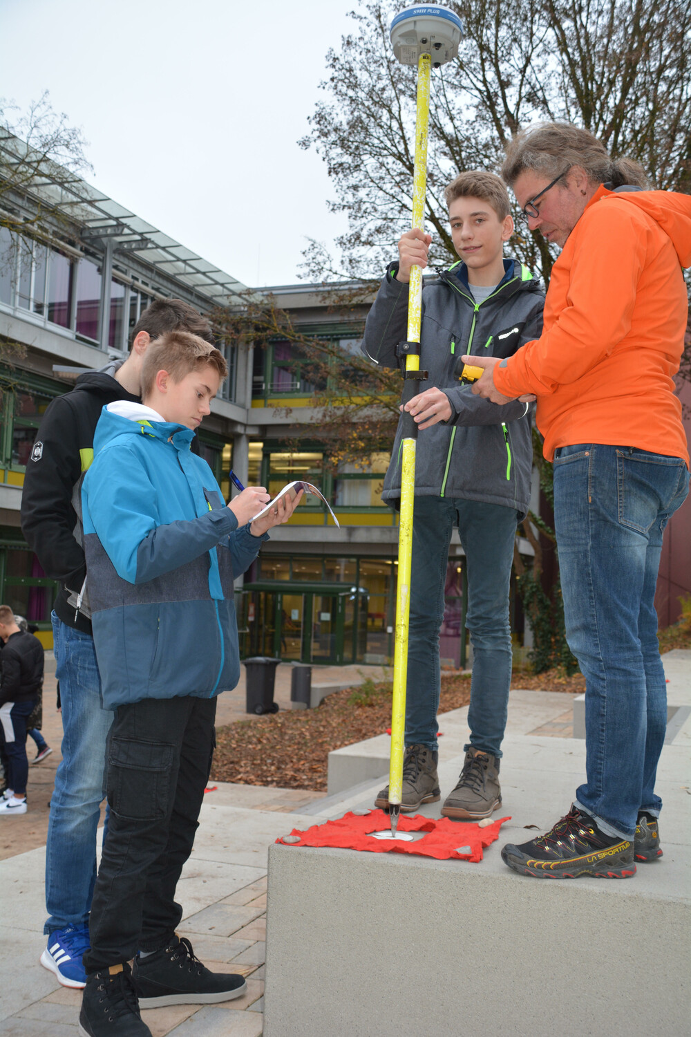 Doch in der vergangenen Woche änderte Haas dafür seinen Arbeitsplatz: Nicht wie üblich stieg er in einen Hubschrauber und nahm mit leistungsstarken Laserscannern die Bergwelt auf. Nein, er begab sich ans Willibald-Gymnasium und bot interessierten Schülerinnen und Schülern Einblick in seine Forschungsarbeit. Ziel der Veranstaltung war es ein digitales, dreidimensionales Modell eines Pausenhofausschnitts zu erstellen, dieses in Google Earth zu verorten und den Schülern die Prinzipien „hinter den Kulissen“ vorzustellen.
