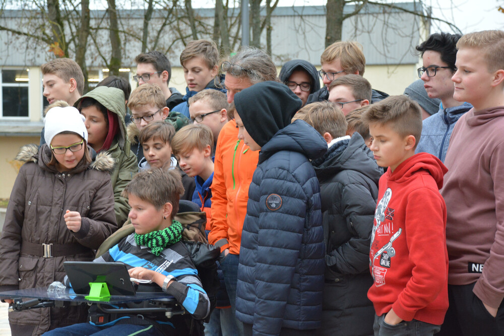 Der Geograph Florian Haas erklärte Schülern des Willibald-Gymnasiums die Handhabung modernster Bildtechnik.
