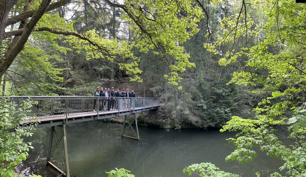 Der erste Tag begann mit einer rundum faszinierenden Wanderung entlang des Ludwig-Donau-Main-Kanals. Auf diesem Weg konnten die Schülerinnen und Schüler nicht nur die Funktionsweise und die geschichtliche Bedeutung eines der bedeutendsten Wasserstraßenbauwerke Europas kennenlernen, sondern auch die idyllische Ortsgeographie von Schwarzenbruck erforschen. Die Gemeinde präsentierte sich dabei als lebendiges Beispiel für den Einfluss der Geographie auf Siedlungsentwicklung und Geschichte. Im weiteren Verlauf führte die Wanderung durch die beeindruckende Schwarzachklamm – ein geologisches Highlight, das den Blick auf die Entstehung und Morphogenese einer wildromantischen Felsschlucht freigab. Die Schülerinnen und Schüler untersuchten vor Ort mit großer Neugier den Flusslauf der Schwarzach: Mittels Wasserproben wurde die Wasserqualität analysiert, was Hinweise auf das ökologische Gleichgewicht und die Bedeutung des Gewässers lieferte. Zusätzlich ergänzte die Untersuchung von Bodenproben die Exkursion um wichtige Erkenntnisse zur Bodenbeschaffenheit und zum Zusammenspiel von Landschaftsmerkmalen. Der erste Tag bot somit eine perfekte Mischung aus Aktivität, Naturerfahrung und fachlichem Wissen, die alle Teilnehmenden mit großer Begeisterung mitmachten.