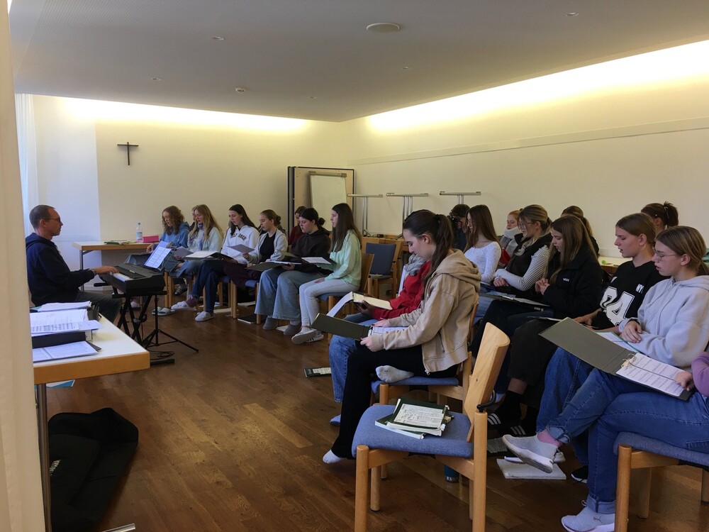 Zum zweiten Mal fanden die Probentage der Musikgruppen in Pfünz statt. Hier wurde intensiv geprobt und sich bereits auf das Weihnachtskonzert eingestimmt. Die Schülerinnen und Schüler aus Großem Chor, Orchester, Streicherklasse 6 und Musical-AG waren mit insgesamt fast 100 Mitwirkenden so zahlreich wie nie sehr engagiert bei der Sache. Und natürlich durfte auch das Gesellige zur Stärkung des Gruppengefühls nicht zu kurz kommen.