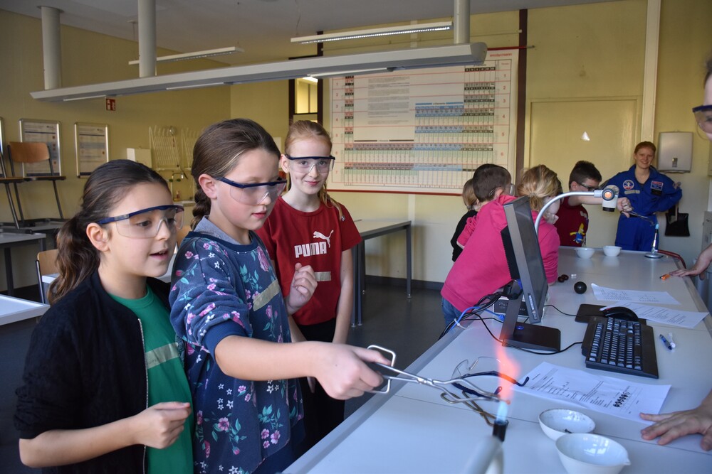 Nach endgültigen Vorbereitungen und dem Versenden der Einladungen, war es am 12. Oktober endlich so weit. Das WG öffnete an diesem Samstag seine Türen für 36 Mädchen und Jungen aus der vierten Klasse, mit denen wir einen heiteren und informativen Vormittag verbrachten. Das Starten einer Wasserrakete, Essen echter Astronautennahrung und die Simulation der Schwerelosigkeit mit einem Seilzug kamen bei den Grundschulkindern ausnahmslos gut an. Auf unsere abschließende Frage, ob sie Spaß hatten und etwas lernen konnten, war ein lautstarkes „Ja“ von allen Beteiligten zu hören. Aber auch wir Organisatoren hatten eine gute Zeit und können von dieser Erfahrung viel mitnehmen.